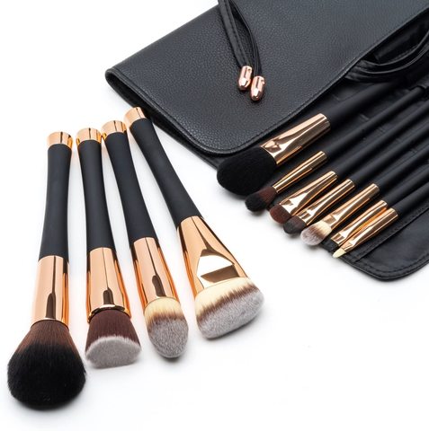 Professional Makeup Brush Collection 11 PCS Set Luxury Cosmetic Brushes with Leather Clutch, Cruelty Free